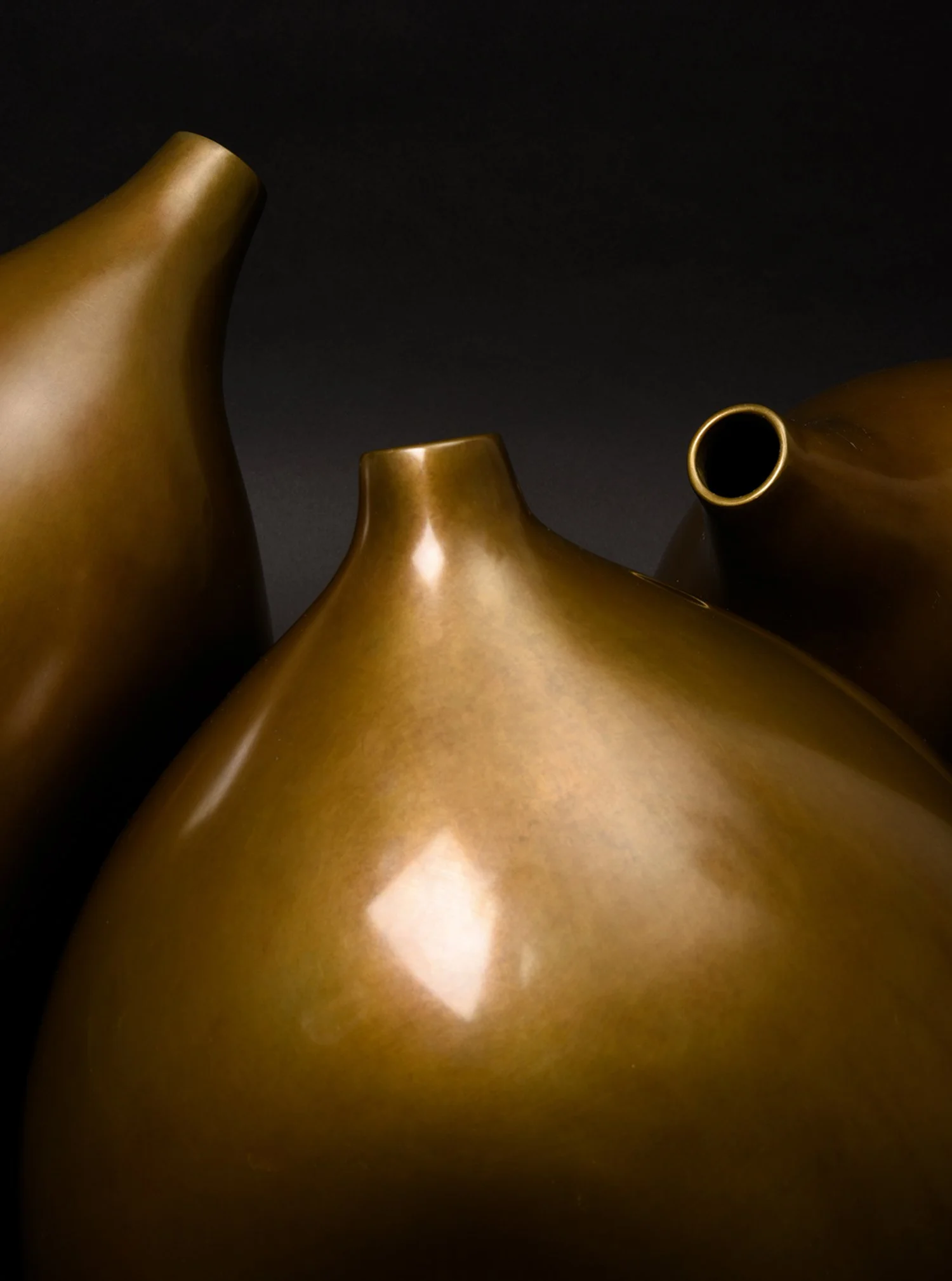 The bodies reflect an interplay between the viscosity of plaster, an elastic mold and the outer constraints. Due to different viscosities, there is a hierarchy of soft interlocking within their boundary. By different degrees of hardening and various size and orientation, the four bodies fit together to form a three-dimensional puzzle, the basis for the manufacturing process of porcelain vases.